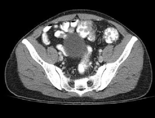 ) . Image TDM du polyp du colon ean coupe axiale . |