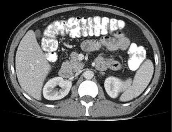 . Image radiologique TDM en coupe axiale .a travers