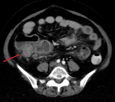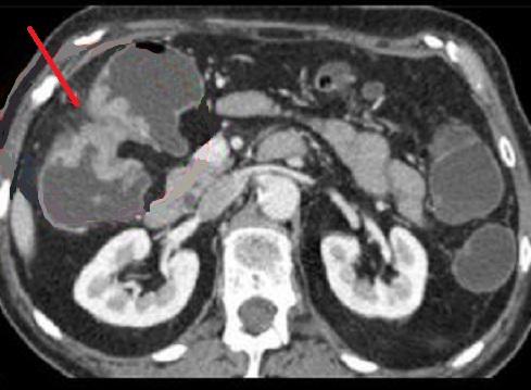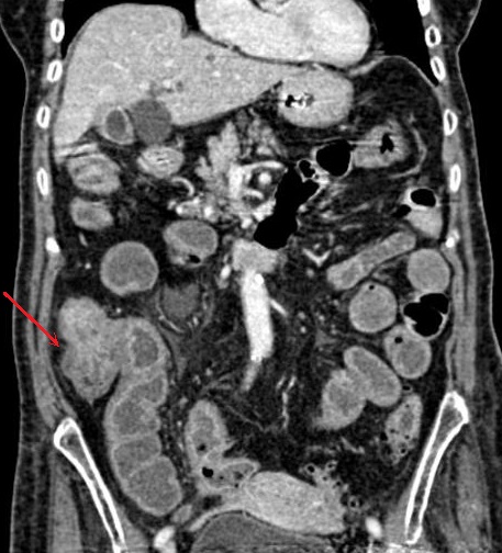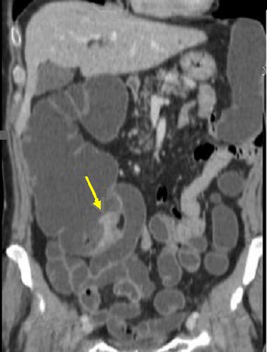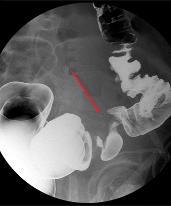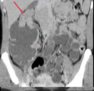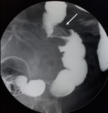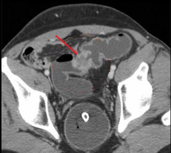 d'une adenocarcinoma du colon sigmoide ( fleche