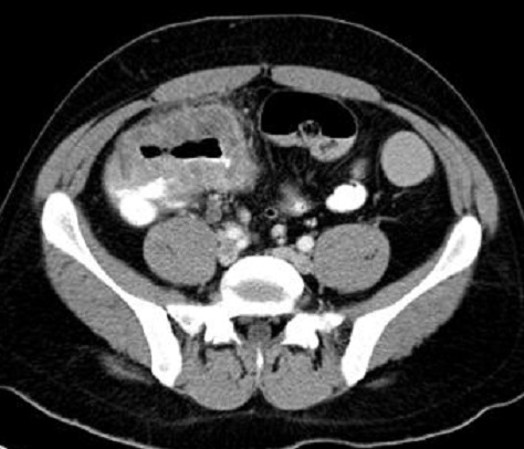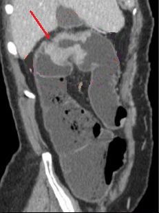 coupe axiale : Adenocarcinome stenosant en forme " trognon