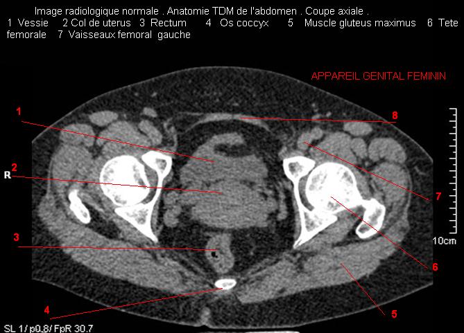 Images radiologique TDM normale de l'abdomen et tube digestif  en coupe axiale ( CT scanner )  :