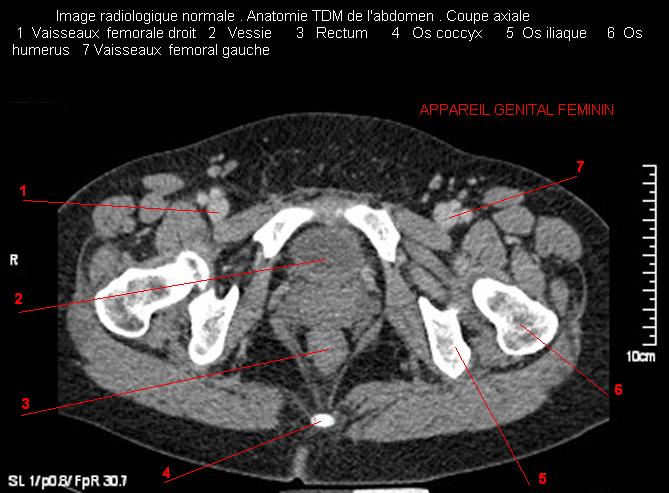 Image radiologique TDM normale de l'abdomen et tube digestif en coupe axiale ( CT scanner ) :