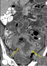 hemorragique intestinale peut en voyait . Image radiologique est une masse irreguliaire