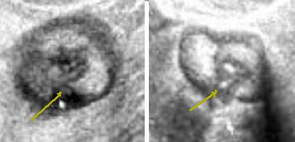 sign " ( fleche jaune ) et epaissisement de la paroi