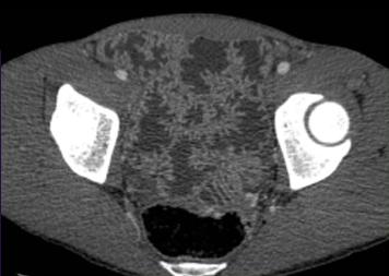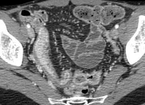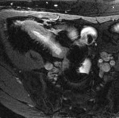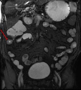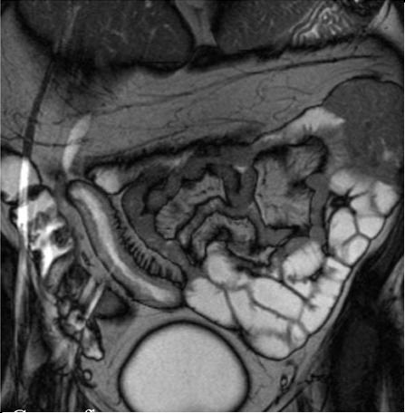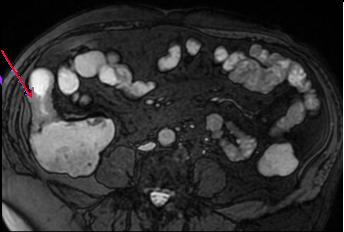 Maladie de Crohn . Image IRM en coupe axiale . |