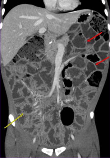 perdre etendue de villosite de l'intestin ( fleche jaune ) . |