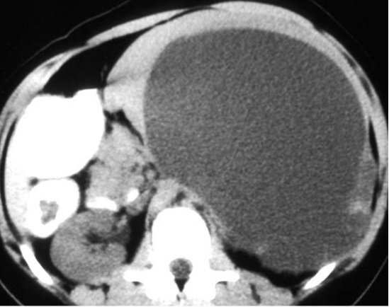 kystique avec parfois encloisoné. Image radiologique TDM est