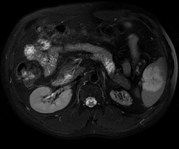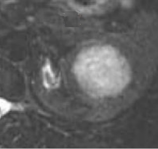 ponderee sur T2 FatSat . Aspect de masse hypersignal