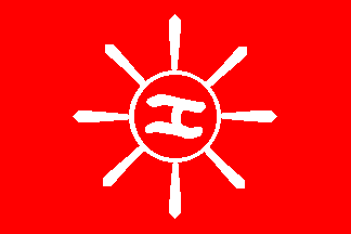 The flag of the Philippines is made of two equal horizontal bands of blue (top) and red, with a white equilateral triangle based on the hoist side. Centered in the triangle is a yellow sun with eight primary rays, which contain three individual rays. A small yellow five-pointed star is found in each corner of the triangle.