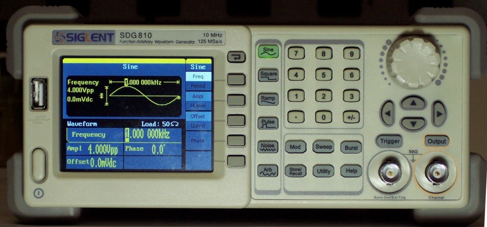 As you can see from the picture the SDG810 has the usual sine, square, and triangular waves. The duty cycle of the square and triangular waves can be adjusted without effecting the frequency. Not all analog FGs can make that statement. In addition there is a narrow pulse With variable width, white noise, and arbitrary waveforms.Pressing the "Arb" key takes you into a menu tree from which you can select 48 built in waves including stair step both up and down, ramp, exponential, log, a noisy sine wave and quite a few others that I've never heard of and have no idea what they might be used for. In addition you can import your own waveforms through the USB connector or transfer them from a thumb drive.