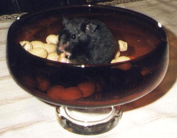 Die schwarze, temperamentvolle Janie mit dem weißen Streifen auf dem Bauch ist in vielerlei Hinsicht ein “echter” Hamster. Sie findet Mohrrüben lecker und sie steckt sich ihr Futter in die Backentaschen, so wie es sich nun einmal für einen Hamster gehört... Wir wollten diesmal gern einen weiblichen Hamster kaufen und wie der Teufel es wollte schien es ausgerechnet zu dieser Zeit kaum weibliche Hamster zu geben. Erst in der fünften Zoohandlung wurden wir fündig!