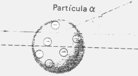 De acuerdo con el modelo atómico de Thomson, las partículas a serán desviadas con respecto a su trayectoria incidente solamente si atraviesan el átomo. Fuera de éste, el efecto del campo eléctrico es muy débil, ya que la carga positiva del átomo esta distribuida uniformemente dentro del volumen de la materia; el campo eléctrico en un punto dado dentro de él es débil y su efecto sobre las partículas a será desviarlas poco con respecto a su dirección incidente.