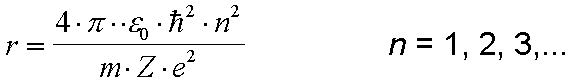 Con la anterior ecuación, y con la hallada para la velocidad, se puede establecer una ecuación que indique el radio de las orbitas permitidas. Esta ecuación es :