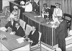 EMPEROR HAILE SELASSIE I ADDRESSES THE JAMAICA HOUSE OF PARLIAMENT APRIL 22, 1966.