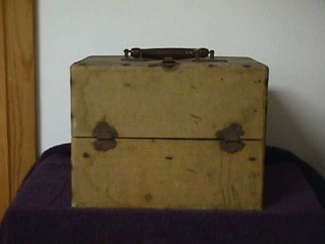 Most of the early portables saw a lot of wear and tear from being taken on many vacations, business trips, etc., and as a result very few are found in good condition today. The cloth covering became ripped and soiled as the radio traveled like a piece of luggage, and the fact that many were stored away in damp basements or attics after all their use didn't help them either. The condition of mine is slightly above average, but I have seen a few that are better. There are no holes or rips in the cloth covering, but it is soiled in several places. Unfortunately, there is little that can be done to remedy this because the cloth can be damaged if excessive cleaning is tried.
