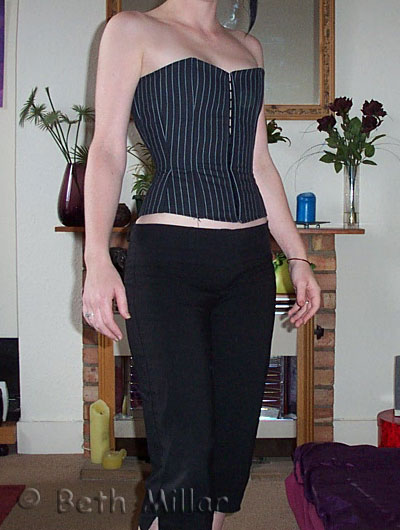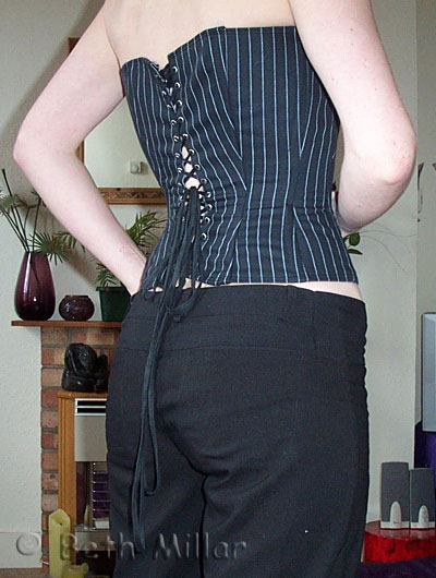 Pinstripe overbust corset.