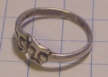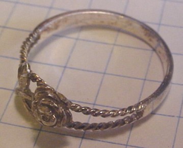 turquoise Small child's silver ring with turquoise inlays STER. 925 “T” initial ring STERLING ring w/ rose effigy 925 ring w/ mother-of-pearl 925 Angel pendant STERLING ring with smiling/frowning faces 925 ring with twisted rope design 925 THAILAND chunky man's ring small silver ring 925 ring with rose effigy STERLING ring with Coat of Arms 925 toe ring 925 ring 925 ring with channel-set stones 925 THAILAND zig-zag ring 925 ring with heart effigy and stone STERLING Crucifix pendant with chain STERLING ring with "LOVE" motif STERLING ring with possible mount for turquoise cabochon silver ring with dual twisted strands |
