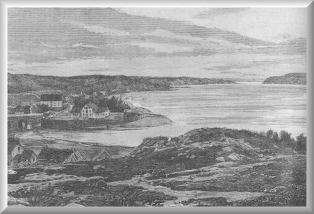 1871. On y voit le premier établissement construit par Peter McLeod à l'embouchure de la rivière du Moulin en 1842.