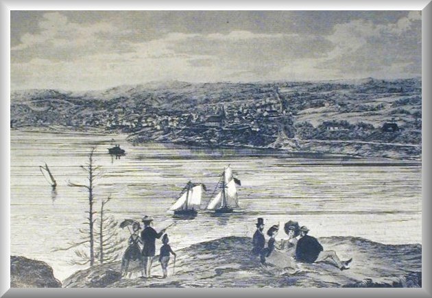 A13. "CHICOUTIMI ON THE SAGUENAY". Cette gravure parue dans un numéro du Canadian Illustraded news de 1871 montre le village de Chicoutimi vu des hauteurs du cap St-François.