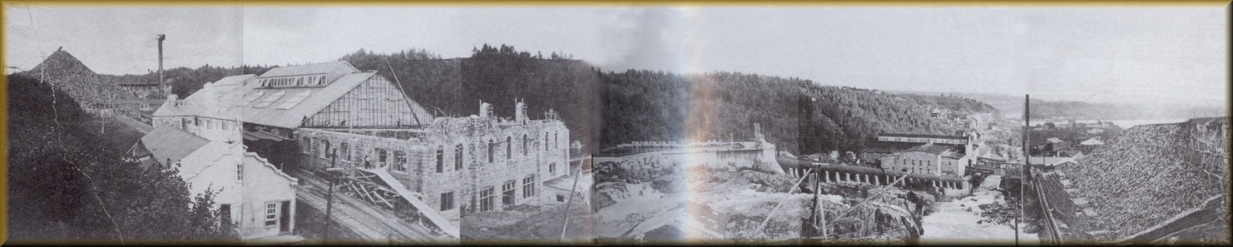 C15. Vue panoramique du site de la Compagnie de Pulpe de Chicoutimi en 1902.