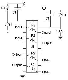 Reverser - This circuit reverses signals when the tact sensors are activated. It can be used to make robots backup.