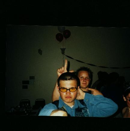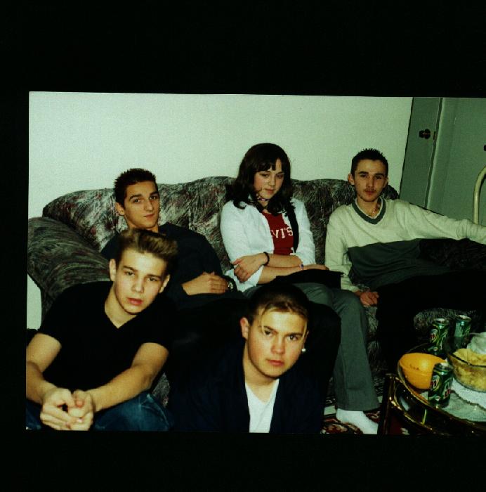 this is a pic of my 16th B-day!! the 2 guys on the floor are my cousin, the guy with blonde streaks and the guy with big bangs is ME!! The people on the couch from left to right are my frinds Ivan, Teah of course and Igor.here are some pics of me and my friends!!!! =D