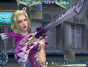 ![]() | Leblanc Japanese Name: ルブラン Romaji Name: Ruburan Sphere Hunting Group: The Leblanc Syndicate (ルブラン一味) Age: ??? Leblanc is the leader of The Leblanc Syndicate, a Sphere Hunting Group. They are the Gullwings' rival. She wields a big ol' fan that she uses to try and kick Yuna, Rikku, and Paine's asses with. But she fails. Well, she has her slavish cronies, Logos and Ormi. She is a sly and cunning thief, so watch out for her. |