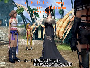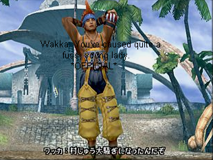 ![]() ![]() | Wakka & Lulu Japanese Names: ワッカ & ルールー, respectively Romaji Names: Wakka & Rûrû, respectively Sphere Hunting Group: N/A Ages: 25 and 24, respectively Wakka and Lulu are married, and Lulu is pregnant. Wakka is energetic and enthusiastic, but Lulu is rather serious. However, she is still happy and nice. They were Yuna's best friends when they were children, and they are still very close. Wakka used to be the coach of the Besaid Aurochs, a blitzball team. Wakka and Lulu have settled down and are now living in Besaid. |