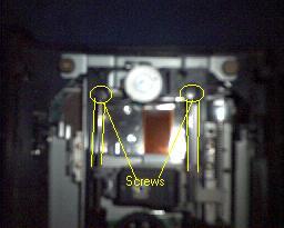 Now on this cover you will see 4 small screws loosen them and take the cover off you will notice the laser almost immediately it has the name SONY stamped on it pictured below