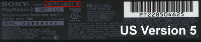 If your model number contains the letter 'R' at the end (example SCPH-30001 R) then your PS2 is a US version 5.
