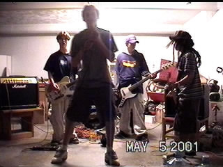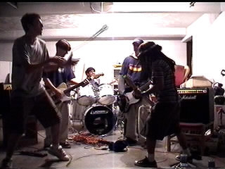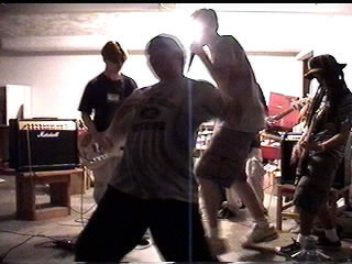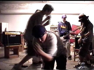 Yeah these are from when we set up in Jasons garage and played a mini show for the nieghborhood Kiddies!!!!!Bodacious!!!It was cool!!!!Thats steve singing, christian on the right on guitar, Jason on the left playing guitar, John (Our fill in for Kutch) playing bass, and Joe in the back on drums!!!!