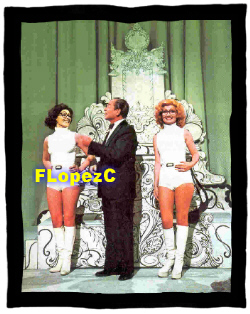 ![]() *Kiko rodeado de sus azafatas Beatriz Escudero y Maria Casal, las cuales junto con Mayra Gómez Kemp formarian tiempo despues el famoso 'Trio Acuario'. |
