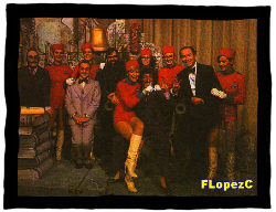 ![]() Chicho, Kiko, los Tacañones ( Prof. Lápiz, Don Menudillo y Don Justo) y las azafatas de finales de 1977 y principios de 1978. June English, Cristina Probodin, Marian Flores, Maria Casal, Victoria Abril y Marta del Pino |