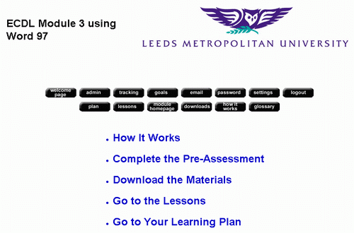 It is then up to you to decide which module you would like to study, it is a suggestion that Module 3 using Word 97 be your first choice, and it is this that we shall follow for this example.