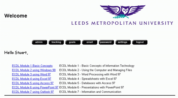After successfully logging into LMU Learn ECDL you should see the following screen: