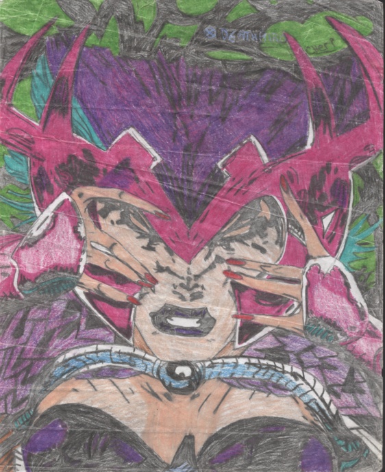 This is a drawing of Psylocke. I don't really know who this character is either. But again the picture was neat and fun to draw.
