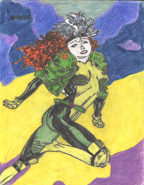This is one of my favorite X-Men, Rouge. She was and i think still is my favorite. Now the picture i drew isn't all that good, in fact, this was my very first attempt at drawing from a comic book picture. The heads a little off and the body isn't well alligned, but it's not bad for a first shot at it.