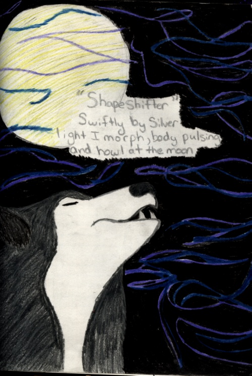 I really like how this one turned out. It is one of the few pictures, besides my comic drawings, that are coloured. I liked it, but my teacher didn't think it was so great. I can't remember why, but she gave me a lower mark then i think it deserved. Stupid teacher! LOL The original looks better, cause this kinda turned out a bit too dark, so you cann't make it out as clearly... but still... ok maybe it was the letters that threw the picture off for the teacher, but oh well! Not half bad :P