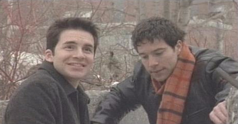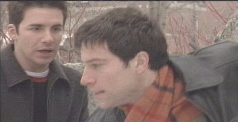 Michael and David at Liberty Diner. David's telling Mikey he's hot. Brian shows up and purposefully sits between them. He's constantly spouting off jibes about last night. And ribbing the doc about what they KNOW really happened with his night. Outside the diner - Brian and David are standing together. David's mumbling really. Brian's pushing the point. David's saying that what he saw last night has nothing to do with Michael. Brian's telling him not to hurt Michael. That getting his rocks off is okay as long as he doesn't let Michael know. (Yikes.) (I sooo don't agree. Having an open relationship like what Brian would think (like what he's told both Michael and David this episode in fact) of is not acceptable unless both parties know and have agreed it's OPEN.)