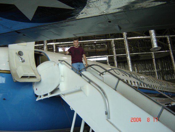 Getting off Air Force One and greeting the "crowd".