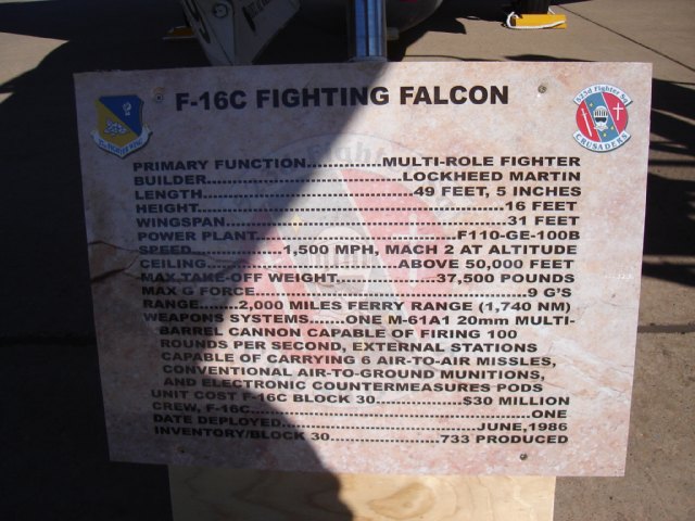 F-16C Info... I wish my car could get 1/10th that max speed...maybe if I can find a big enough hill..hmmm!!