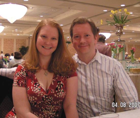 This year my family went to the Hilton's Easter brunch. Jon and I picked up my Grammie and Grampie and drove over to join everyone else. Grandma and Dat, the Kruse's, aunt Sally, and my sister Samantha were there, too. The food was among the best we've had at brunch, but they really needed to have more desserts to select from. Hee hee! We took some silly and some really good pics while there. I had my picture taken with my cousins and the Easter Bunny!