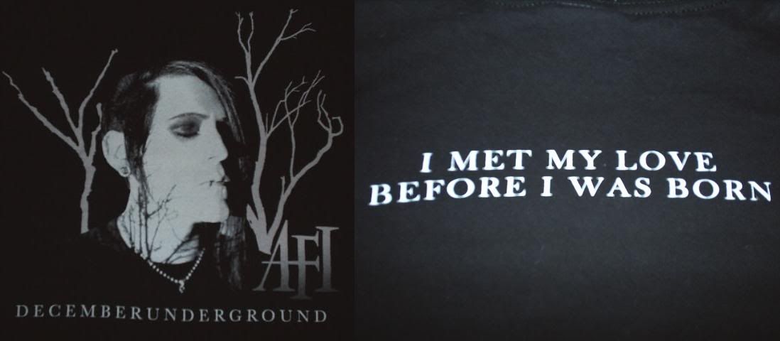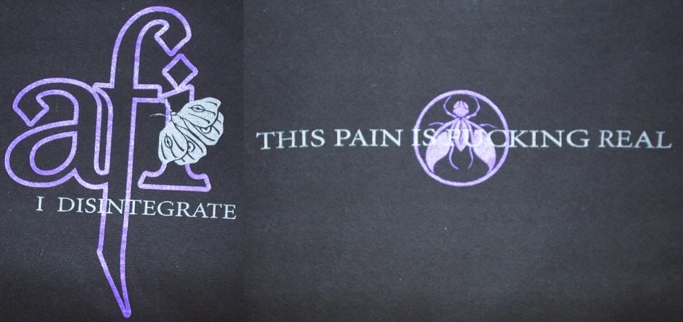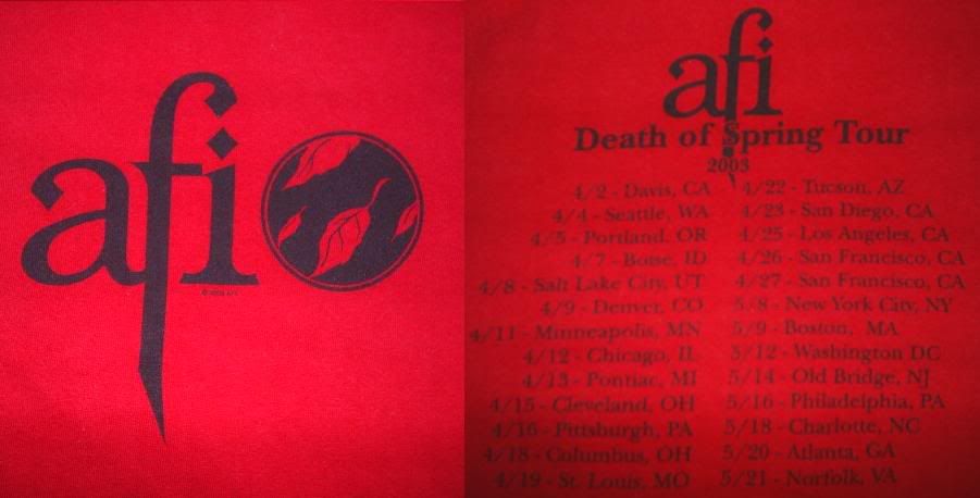 This is my most recent one I got on the Summer Shudder tour. I wish I could have got Adam, Hunter and Jade shirts too, but I just couldn't afford $80 worth in AFI shirts this time.