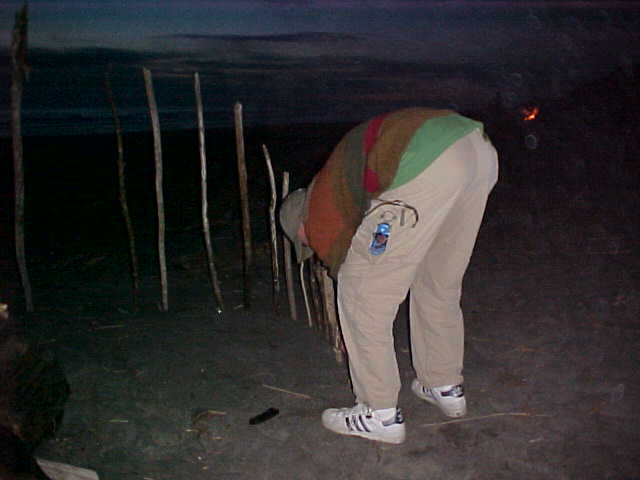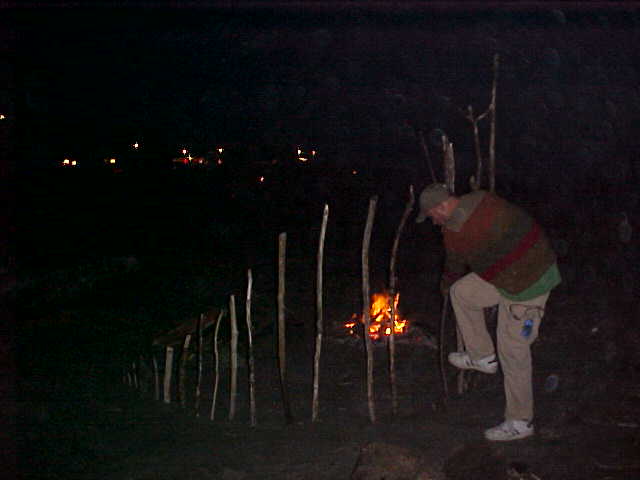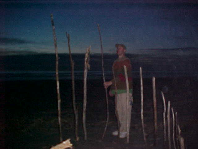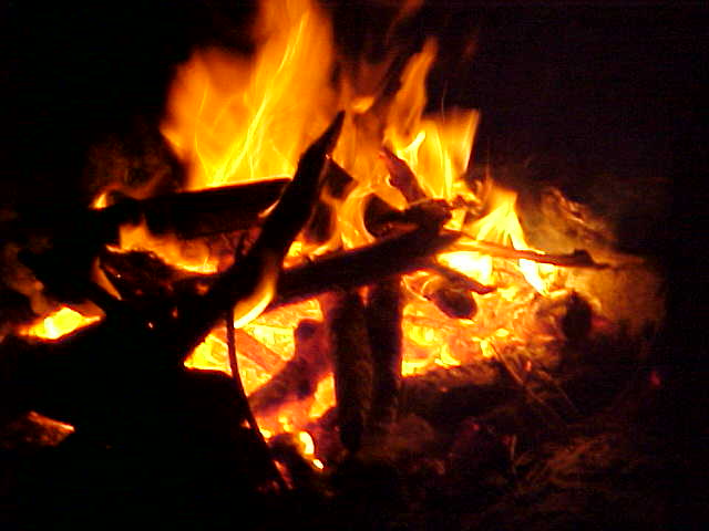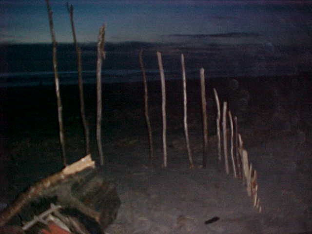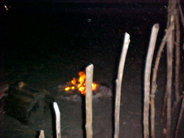 Our little bonfire on Rockaway Beach Bonfire view from behind the driftwood