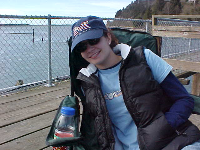 Sarah on the pier itchin to dive off! Purple Hyacinth