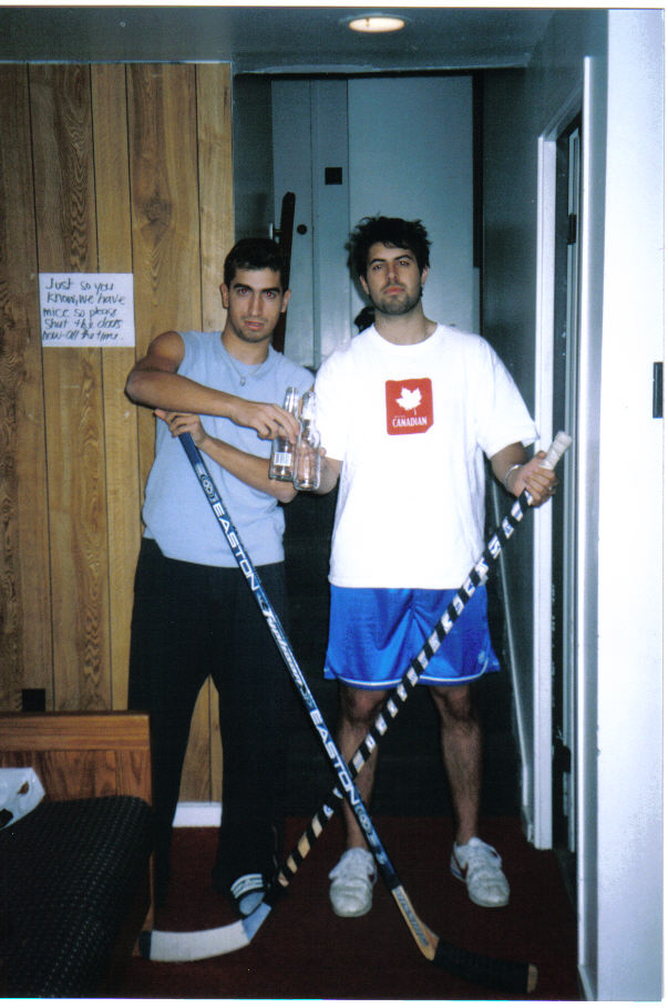 Look out people! They're kickin' back on grandpa's old cough medicine and have hockey sticks! Agh!