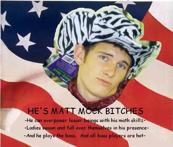 Well, this sums up my picture tribute to Matt as lame as it is. I do hope that he enjoys himself in England. Here's hoping that he joins the ranks of such great knights as Elton John and Paul McCartney. And that drunken matt becomes famous on two continents. And that he remembers to email all of his friends about three times daily. And that we find a way to fill the space left by Matt. I'm thinking about retiring his jersey on the South Campus Sizzle so some other schmuck doesn't take it. Which means matt will have to email with his jersey number.