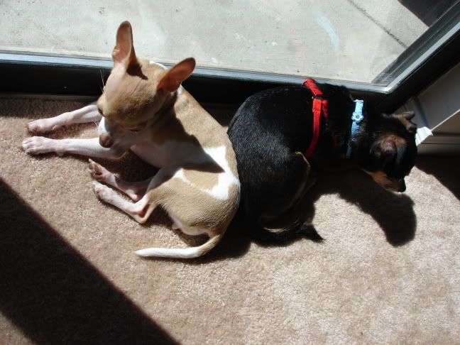 Lucy (white and tan) and Rigby (black and tan) are the most loving