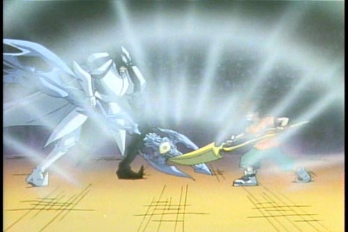 Joker vs. Koganei! Joker and his honkin' great big madougu, Taishaku Kaiten, against Koganei and the Kougan Anki. Not that you learn anything about Taishaku Kaiten in the anime, but it manipulates gravity.