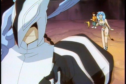While watching Kurei and Recca fighting, Joker adds a few tips of his own--namely about illusion not working on Setsuna, who's blind anyway and goes by body heat.